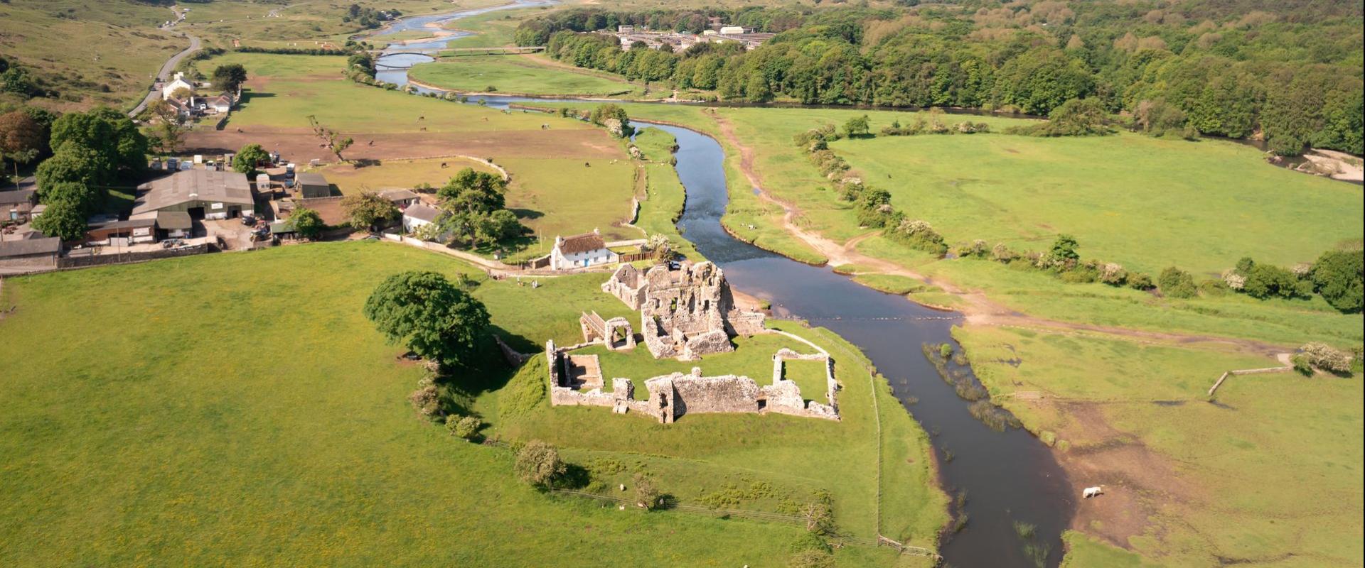 There is available parking next to the river, however, please note that as the river is tidal it is likely to breach, especially during spring tide. It is advised to seek higher parking grounds when visiting during high tides. The castle grounds will also be affected within these conditions, be mindful of areas of open water.