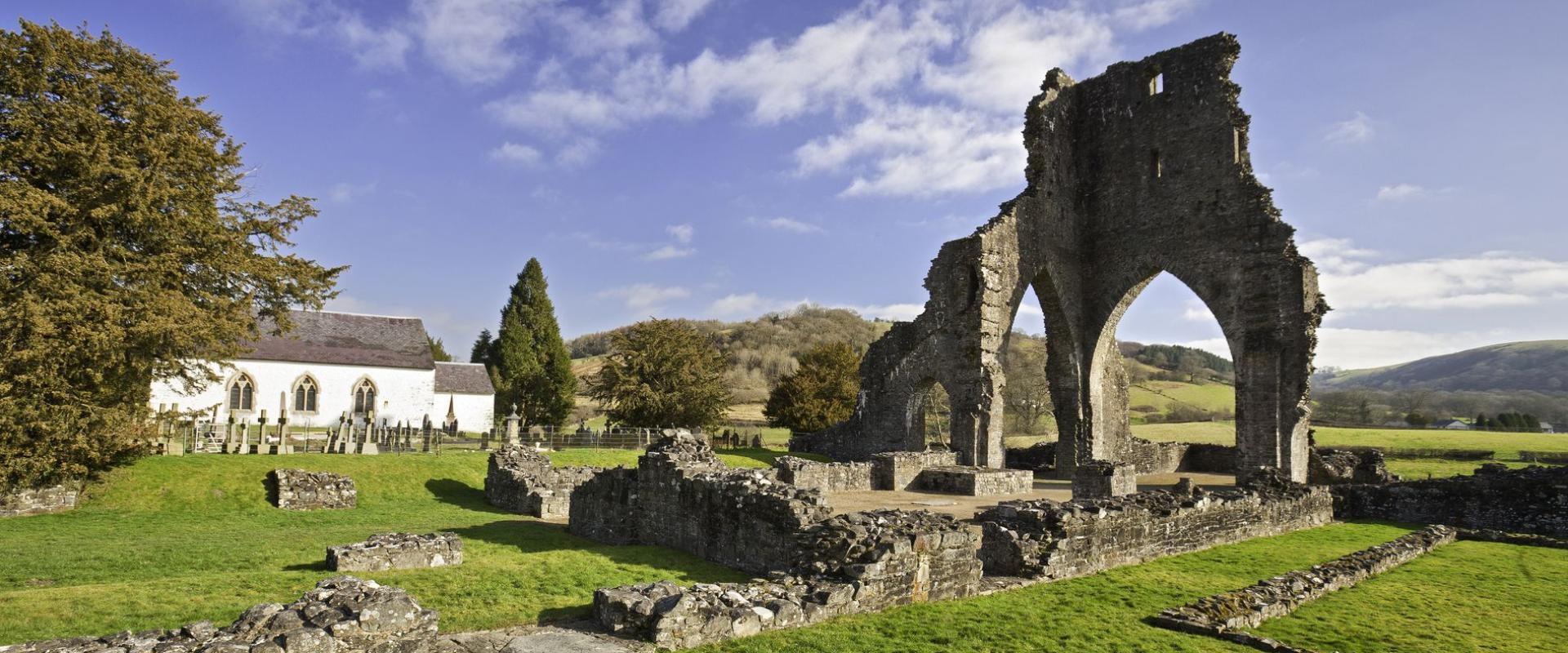 The church tower, standing almost to its full height, is the most impressive feature of the ruined abbey, which never enjoyed the wealth and success of the Cistercian religious settlements – quite widespread throughout Wales – that inspired it. Lack of funds meant that the church was never fully completed, though the outline of the footings demonstrates the scale and ambition of its design. The ruins stand in an idyllic setting beside Talley’s twin lakes.